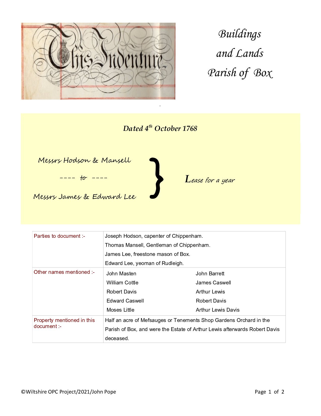 Parishes – I
