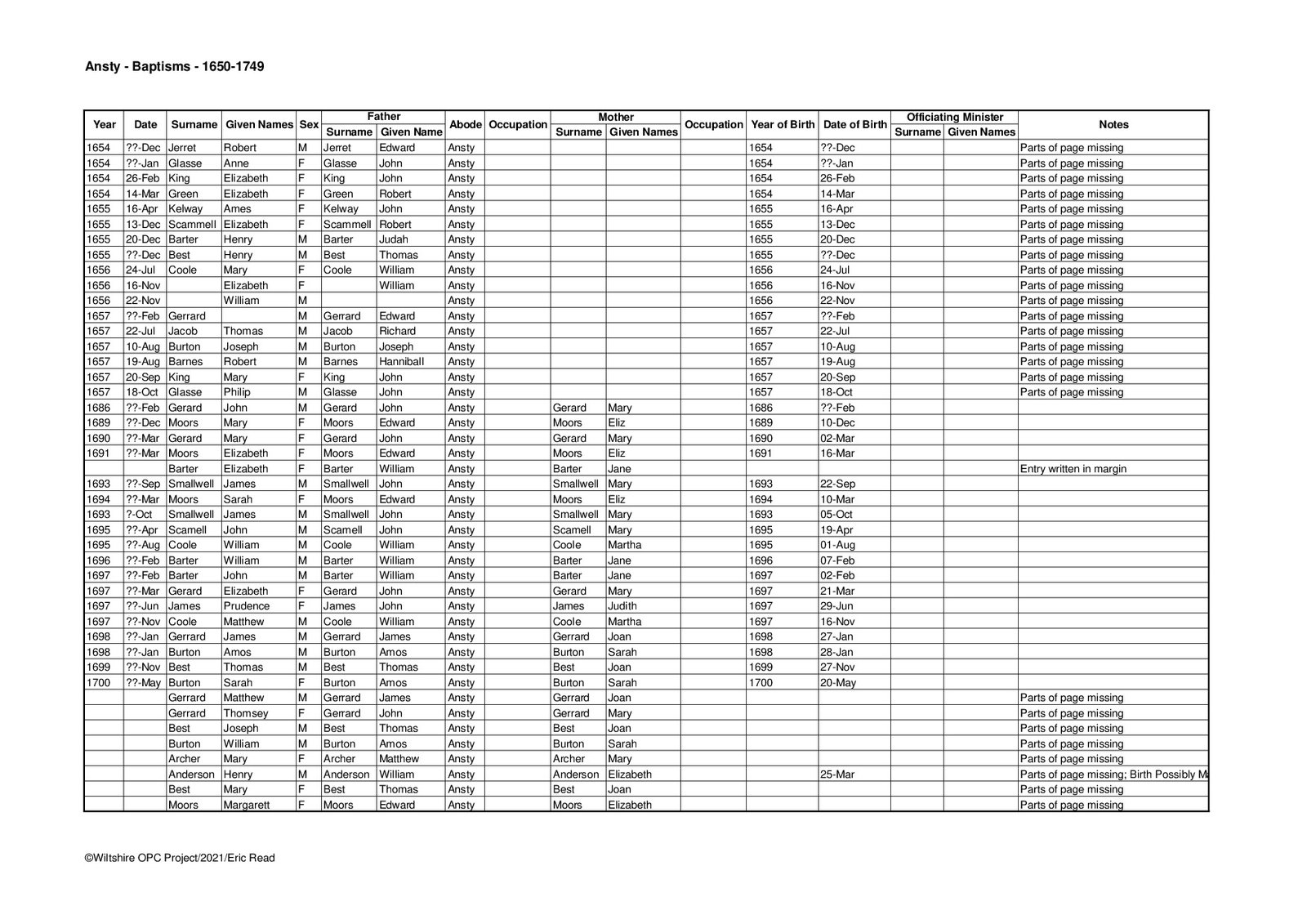 Parish Index