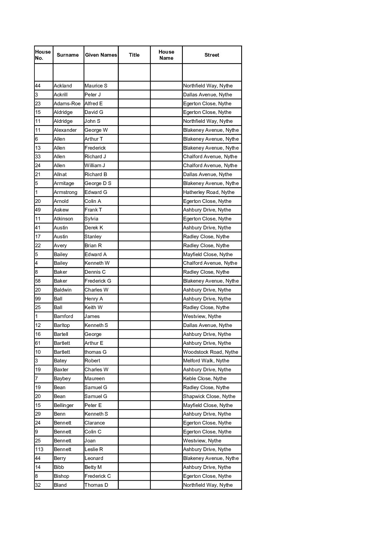 Parishes A-E